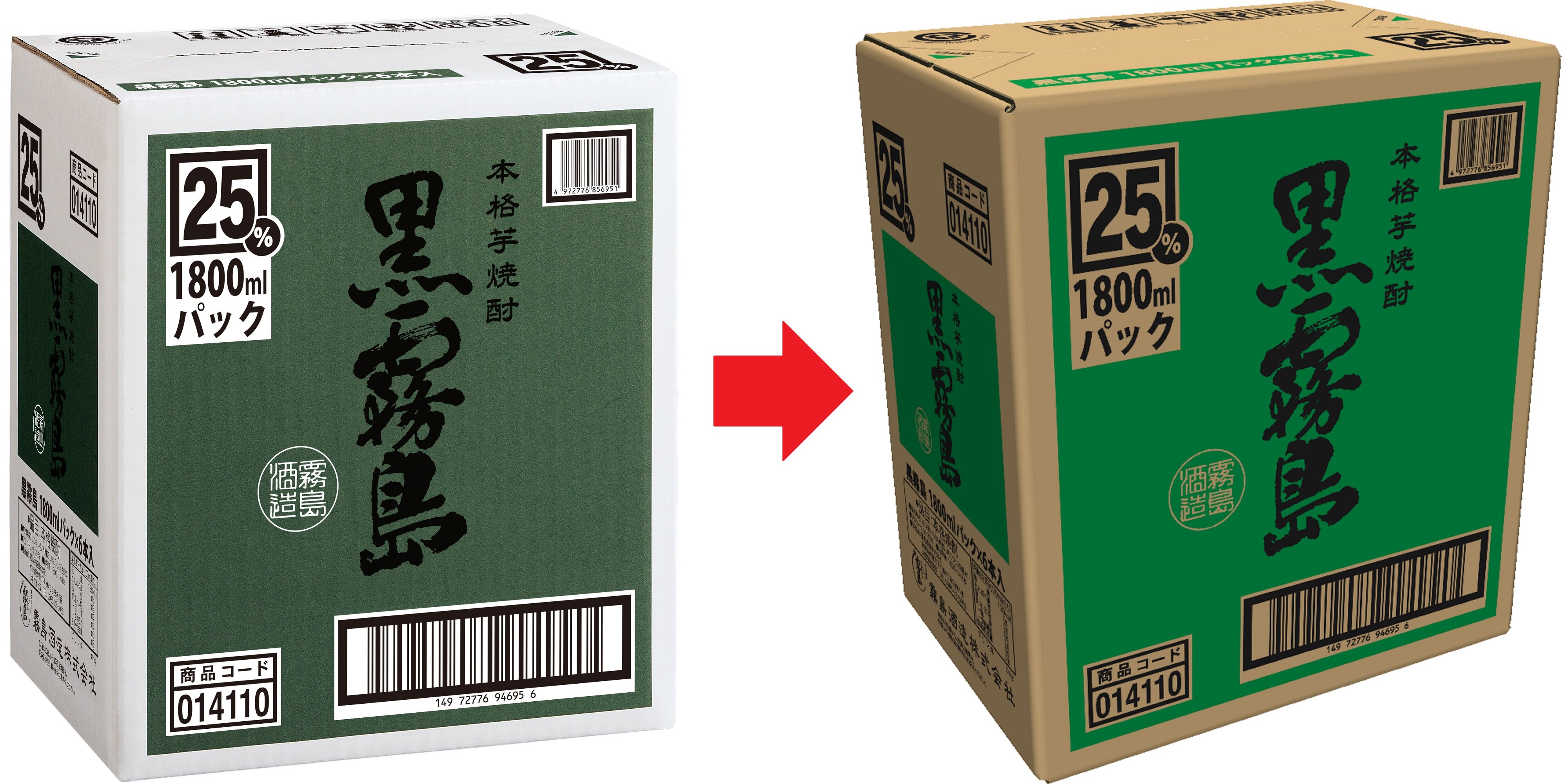 雾岛造酒股份有限公司将把其正宗烧酒外包装所使用的所有白色瓦楞纸板更换为更加环保的包装。本司之前曾使用棕色瓦楞纸板包装部分产品,将把所有瓦楞纸板更换为棕色,并将从 2025 年 6 月以后的发货中逐步更换。此外,为防止因白色变为棕色而导致识别率下降和条形码读取问题,我们将更改部分商品的设计和颜色。请注意,规格的这种变化不会影响强度。
